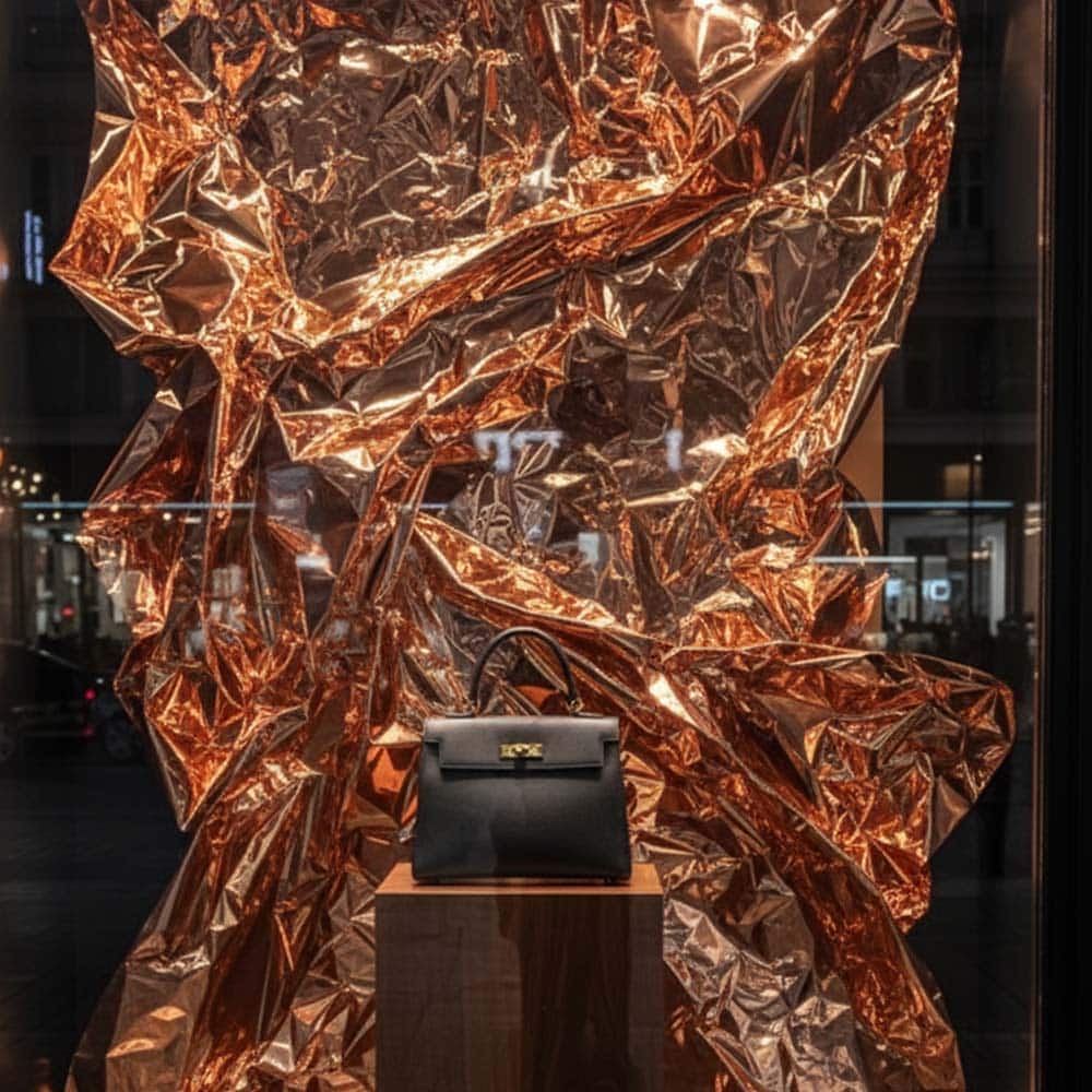 In retail, it enhances products through warm luminous reflections. In scenography, it amplifies light effects and creates spatial depth. In architecture, it becomes a sculptural surface that transforms walls and ceilings into expressive design elements.