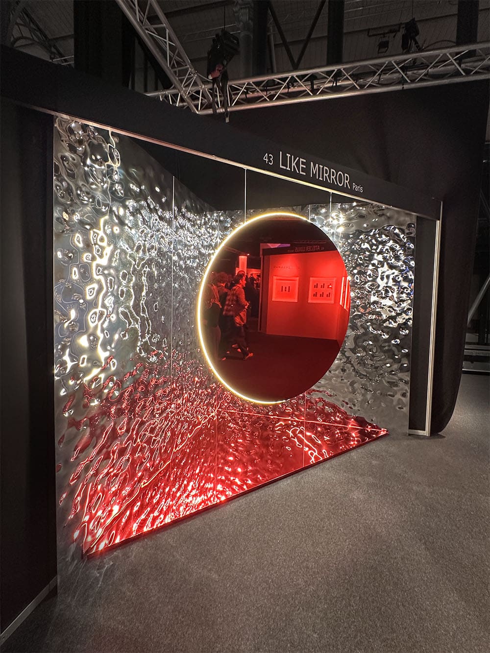 Notre équipe vous a accueillis sur le stand 43 avec une scénographie pensée pour éveiller la curiosité des architectes, designers et prescripteurs en quête de nouvelles matérialités miroir.