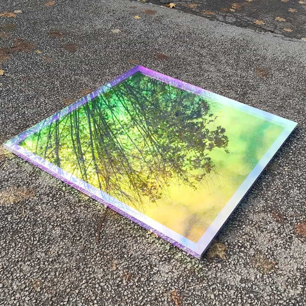 Cependant, contrairement à nos miroirs, nos panneaux Film Dichroïque ne réfléchissent pas la lumière à proprement parlé, ils sont partiellement translucides, mais tirent leur intérêt des effets de diffraction de la lumière qu’ils créaient. Cette diffraction laisse apparaître de multiples arcs-en-ciel multicolores !